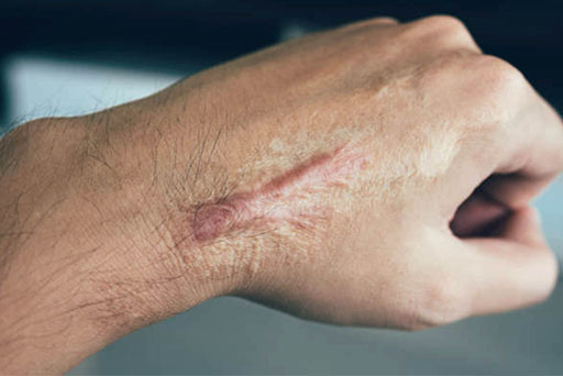 اسکار برجسته (کلوئید یا هیپرتروفیک): زمانی که بدن بیشازحد بافت اضافی تولید کند، اسکار برجستهتر از سطح پوست ایجاد میشود. در کلوئیدها این برجستگی فراتر از محدوده زخم اولیه است. (مانند جای بریدگی و سوختگی)